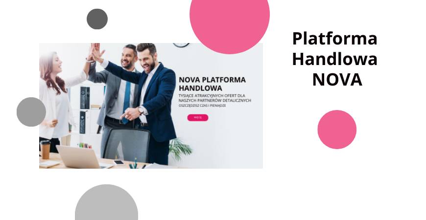 Platforma Handlowa NOVA powstała z inicjatywy właścicieli sklepów oraz zaprzyjaźnionych dostawców, którzy chcąc rozwijać swój biznes przy jednoczesnej optymalizacji kosztów postanowili stworzyć miejsce, gdzie zarówno sprzedający jak i kupujący mogą zaoszczędzić czas, pieniądze i mieć dużą satysfakcję z jakości wykonanej pracy. Platforma Handlowa NOVA jest miejscem biznesowym, w którym spotykają się kupujący oraz sprzedający. Więcej o platformie... kliknij