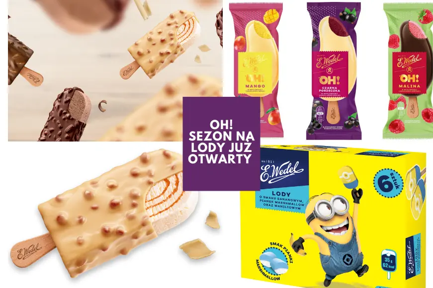 E. Wedel wprowadza do swojej oferty kolejne lody! Już od kwietnia konsumenci będą mogli wybierać między mrożonymi nowościami o smaku czekoladowym, waniliowym, karmelowym i truskawkowym. To jednak nie wszystko – równocześnie powraca hit zeszłorocznego lata, czyli lody Ptasie Mleczko® w linii złożonej z trzech wariantów smakowych.