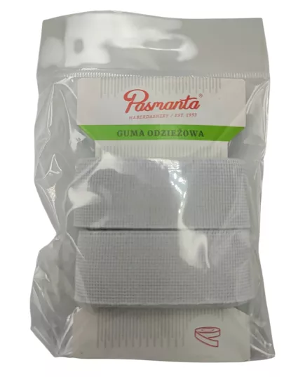 Guma odzieżowa płaska o grubości 5mm i kolorze białym o wysokiej jakości i bardzo dobrej elastyczności.