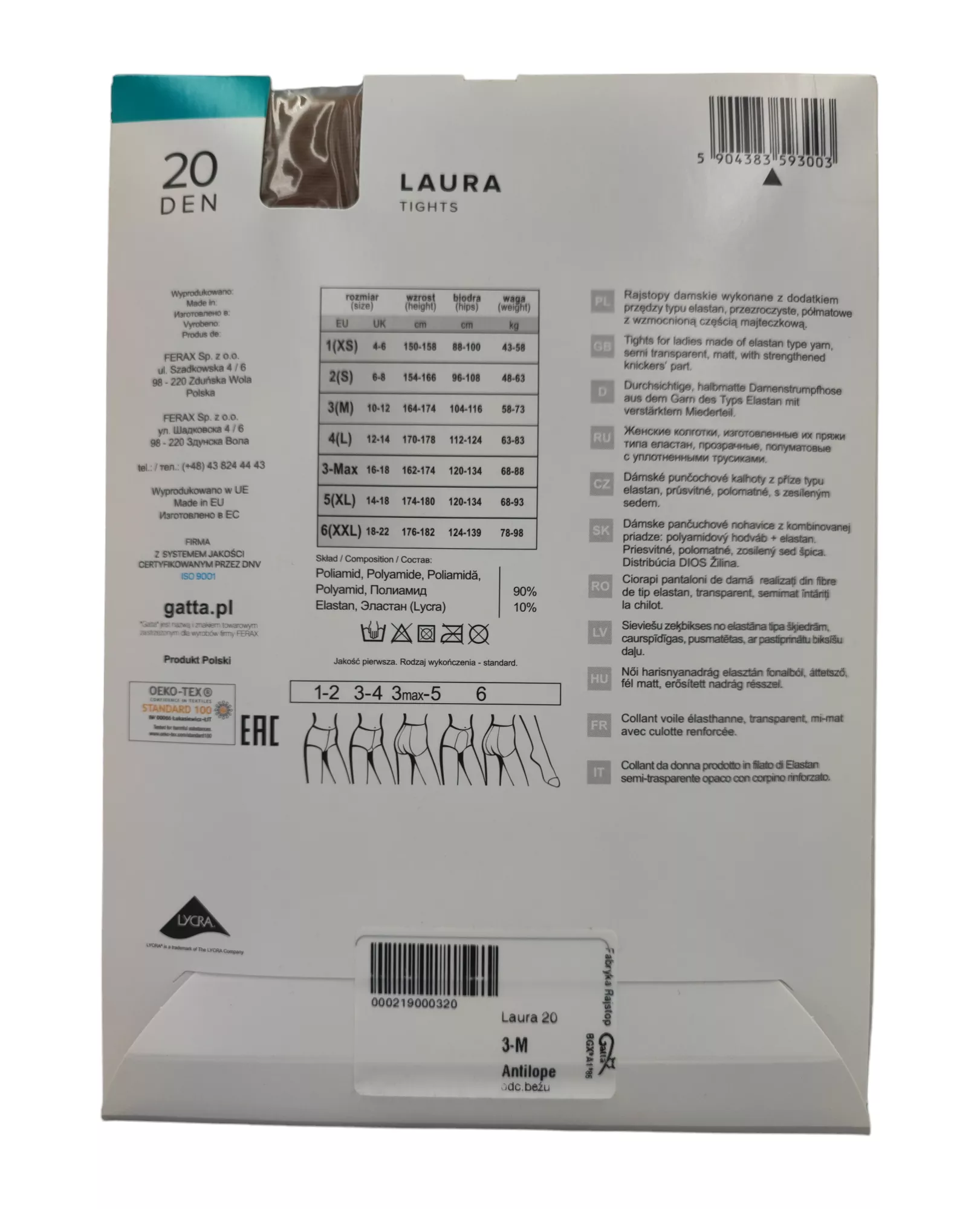 Rajstopy Lycra 20 den LAURA GATTA