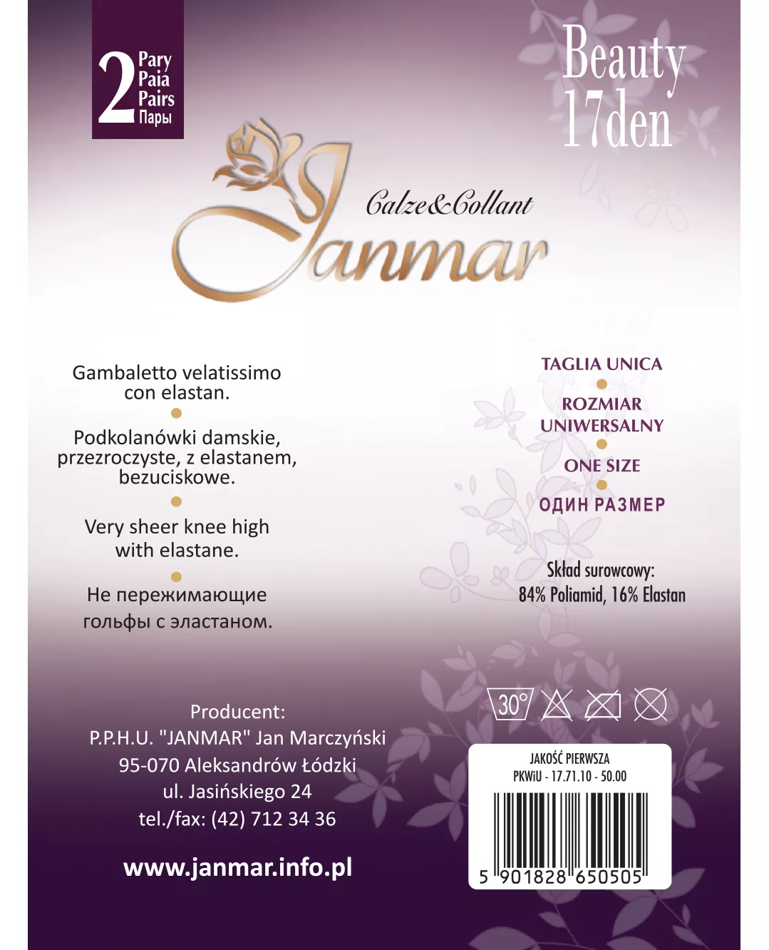 Podkolanówki Lycra 17 den 2 pary JANMAR