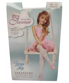 Żakardowe rajstopy dziewczęce, wzorzyste. Wykonane z najwyższej jakości włókna. Idealne na wyjątkowe okazje. Skład:  Poliamid 100%