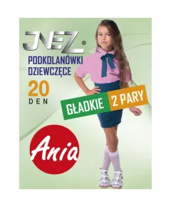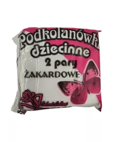Podkolanówki dziecięce żakardowe o różnych wzorach. Pakowane, w woreczku znajdują się 2 pary. Skład:  Elastan 3%, Poliamid 97%