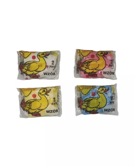Skarpetki dziewczęce o różnych wzorach i kolorach. Pakowane w woreczek. W woreczku znajdują się 2 pary.