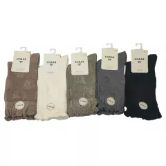 Artykuł 099 to skarpety damskie wzorowane (zakostki), miękkie i delikatne, idealne do codziennego użytku. Produkt wykonany z  wysokiej jakości przędzy bawełnianej. Dostępne w wielu wzorach oraz kolorach. Skład: Bawełna 71%, Poliamid 23%, Elastan 4%, Włókno metalizowane 2%