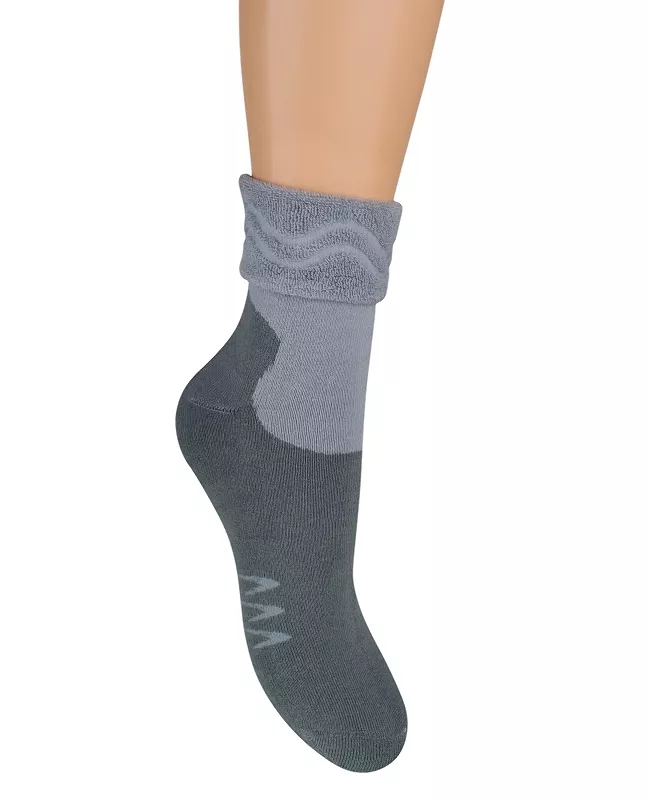 Skarpety damskie frotte z bezuciskowym ściągaczem wykonane z milutkiej bawełny. Ciepłe, miękkie i komfortowe w noszeniu.