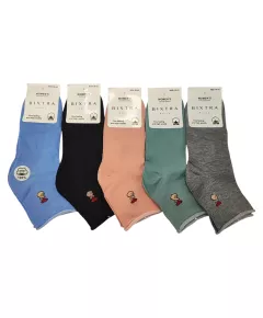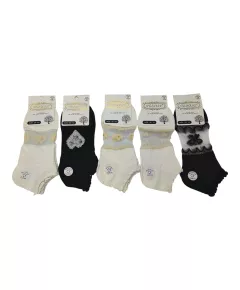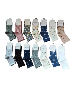 Artykuł 099 to skarpety damskie wzorowane (zakostki), miękkie i delikatne, idealne do codziennego użytku. Produkt wykonany z  wysokiej jakości przędzy bawełnianej. Dostępne w wielu wzorach oraz kolorach. Skład: Bawełna 71%, Poliamid 23%, Elastan 4%, Włókno metalizowane 2%